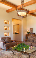 peek at mountain ranges. Wood warms this house in the East Mountains. The